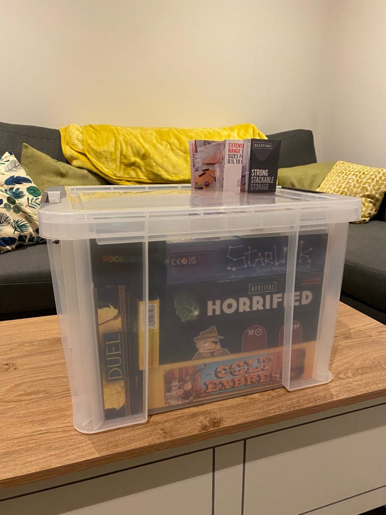 Using Manutan’s 36L Clear Plastic Storage Box, game night has reached a whole new level for Jonny!
