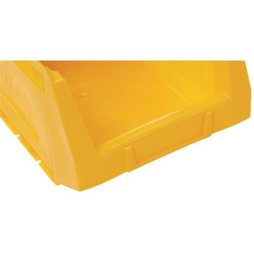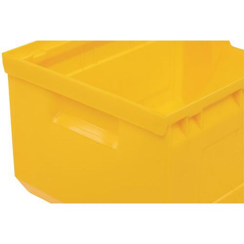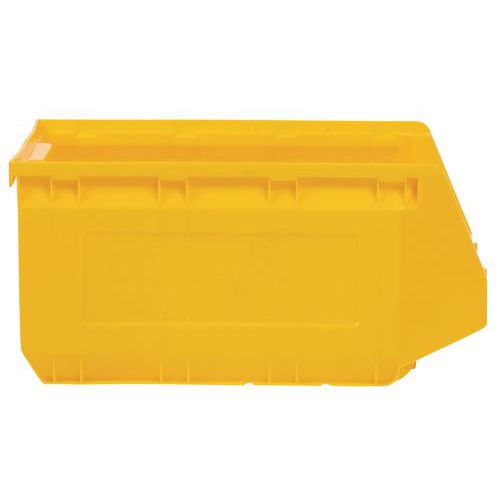 The front opening makes the bin easy to pick up and allows access to the contents even when stacked.