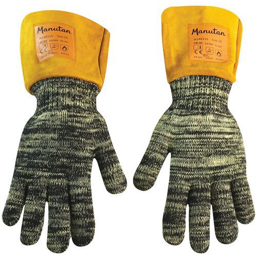 | Product Name | 100°C heat-resistant protective gloves, Fabric: Leather, Glove size: 10, Colour: Black, Model: With cuff |