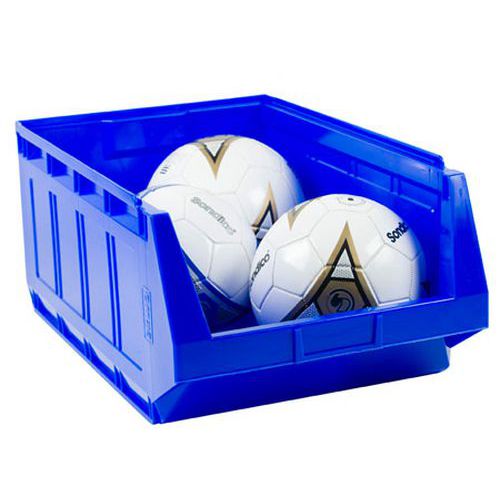 The front opening makes the bin easy to pick up and allows access to the contents even when stacked.