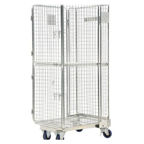 - Solid 3-sided roll container made of electrolytically galvanised steel.
