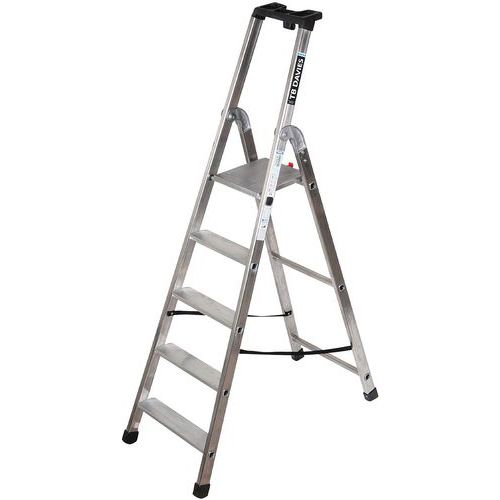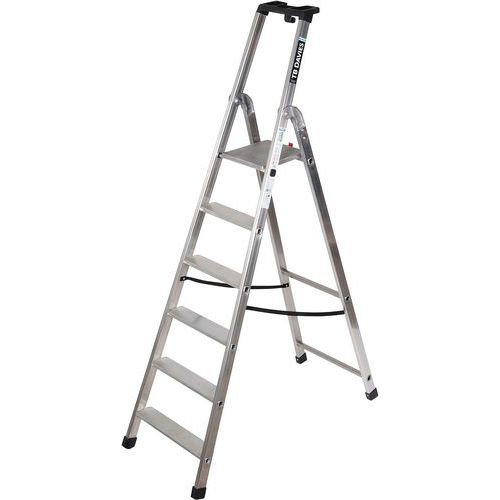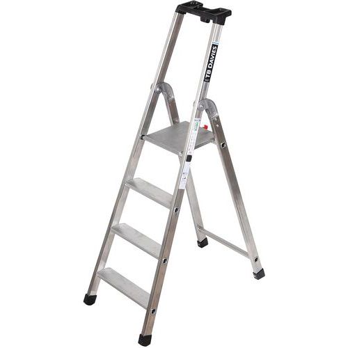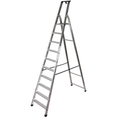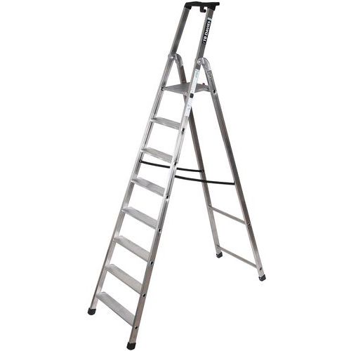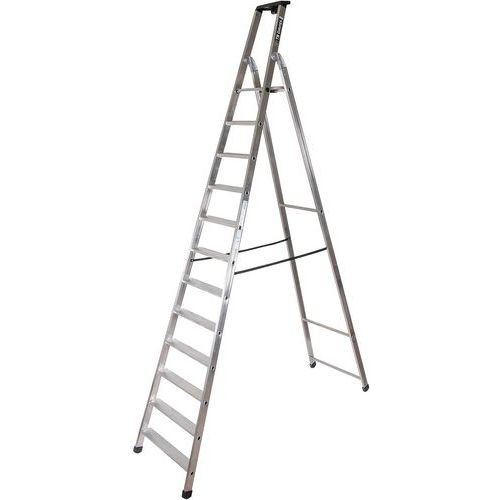 Aluminium and professional ladder with deep serrated treads, ideal for heavy-duty work.