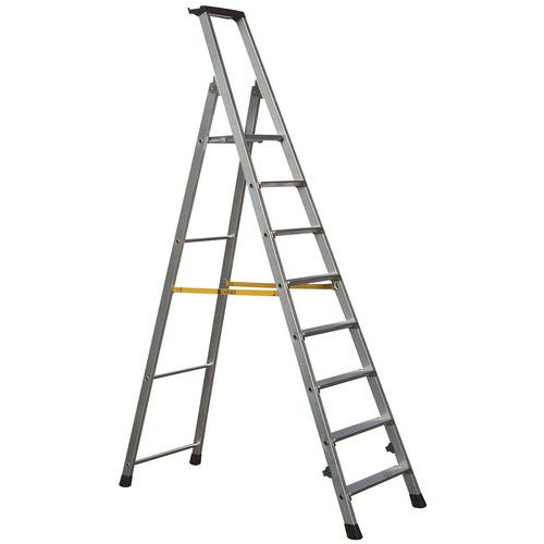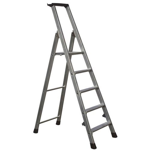 Robust, stable and durable with non-slip ribbing platform. The aluminium extruded profile offers excellent platform stability. These ladders feature a storage tray for tools and small parts. Non-slip plastic base offers firm and stable climbing. Anti-splay Perlon straps on 7,8 and 10 tread options. Complies with EN 131 standards.