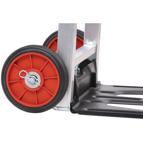 - The large rubber wheels and lightweight aluminium frame make this sack truck easy to move.
