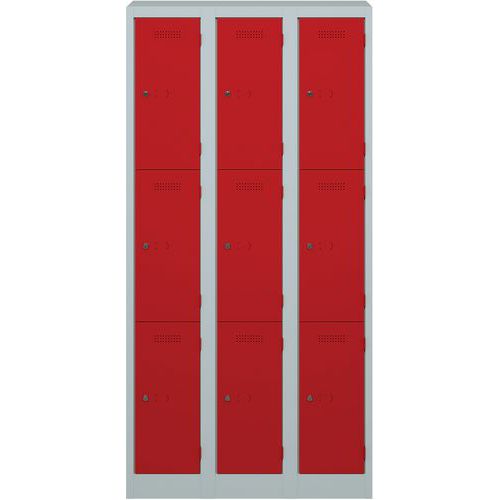 Designed for durability and aim to fulfil tough ‘back of house’ storage needs. Ventilated doors allow air to flow through the lockers to help stop dampness from building up. There are discreet label holders on all doors. The strong hinges can withstand rough handling. The metal casing is finished in a smart grey colour. Delivered assembled and ready to use. Five-year warranty.