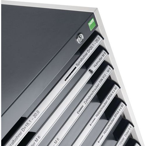 The door has an inner Perfo lining for handy, accessible and flexible tool storage. The 75kg UDL drawer has 100% roller bearing slides that open the drawers fully and smoothly, even if they are filled up. The 75kg UDL shelf inside the cabinet is adjustable on a 25mm pitch. Different drawer sizes offer efficient storage for tools and parts. The central 3 point locking system offers superb security. The smart, powder-coated finish is both resilient and professional in appearance. The heavy-duty steel housing has an impressive UDL capacity of 1.5 tonnes. Made in UK Max. load per shelf (kg) : 75 kg Max. load (kg) : 1500 kg