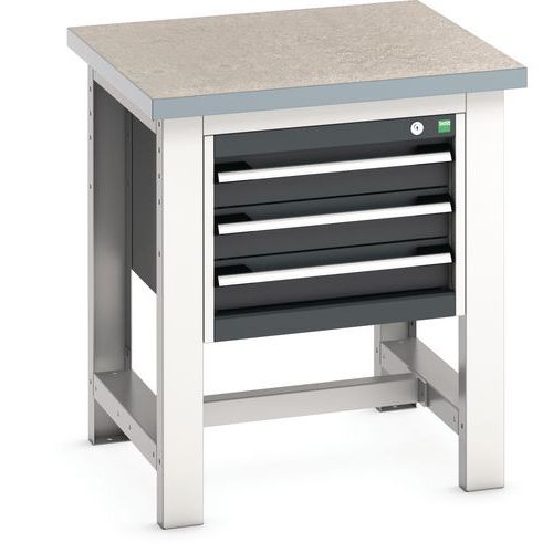 Strong Bott Cubio workbench with 40mm lino worktop & 1 or 3 drawer choice