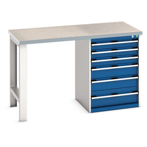 Heavy-duty braced steel frame boasts up to1200kg UDL - the highest UDL offered by Bott. Differently sized drawers give an efficient way to store tools and parts. 40mm thick worktop has a 2mm grey linoleum surface with plastic edge-banding, offering resistance to water, oils, acids and chemicals. The drawers are reinforced and fully lockable, with a central 3 point locking system for safety and security. The drawers have 100% roller bearing slides, allowing easy access to the entire drawer, even when full. The powder-coated finish protects and looks professional. Simple self-assembly with full instructions provided.