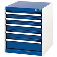 Different drawer sizes offer efficient storage for tools and parts. The drawers have a lock system that prevents more than one drawer from being opened at the same time. The 75kg UDL drawers have 100% roller bearing slides that open the drawers fully and smoothly, even if they are filled up. The central 3-point locking system offers superb security. The steel frame has a smart, powder-coated finish that is both resilient and professional in appearance. The ergonomic handle has a removable labelling strip and a transparent plastic cover. Delivered fully assembled. Dimensions measured as height, width, and depth: 600 mm (height) x 525 mm (width) x 525 mm (depth). Made in UK Max. load (kg) : 1500 Max. load (kg) : 1500
