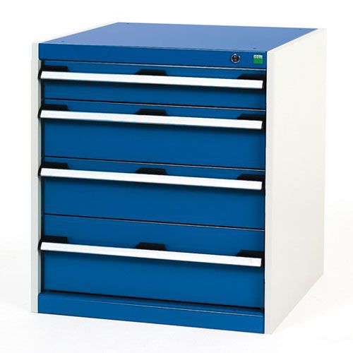Fully lockable, ensuring security and safety. Multiple drawer sizes offer a organised and efficient method of storing tools/parts. All drawers have a 100% extension roller bearing slide and scuff-resistant galvanised pans, for smooth yet frequent use. Smart, powder coated finish is both resilient and professional. All cabinets are fitted with a drawer blocking mechanism to prevent more than one drawer from being opened at a time. The reinforced steel housing has a UDL capacity of 1 tonne. Drawers have a standard UDL of 75 kg. Optional worktops and top trays available - please see accessories.