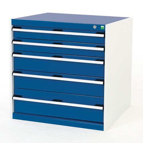 Fully lockable, ensuring security and safety. Multiple drawer sizes offer a organised and efficient method of storing tools/parts. All drawers have a 100% extension roller bearing slide and scuff-resistant galvanised pans, for smooth yet frequent use. Smart, powder coated finish is both resilient and professional. All cabinets are fitted with a drawer blocking mechanism to prevent more than one drawer from being opened at a time. The reinforced steel housing has a UDL capacity of 1 tonne. Drawers have a standard UDL of 75 kg. Optional worktops and top trays available - please see accessories.