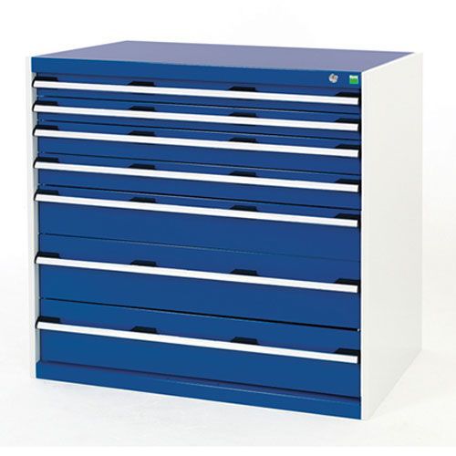 Bott Cubio multi- drawer cabinet for the safe & secure storage of tools/parts HxWxD 1000x1050x650mm.