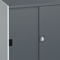 Sliding door is fully lockable, with a central 3 point locking system.  Ideal for when office space is at a premium, with little door opening leeway needed.  Robust welded steel reinforced frame for heavy duty environments.  Galvanised steel shelving is wholly adjustable with a 25mm pitch.  Powder coated frame is both smart and scratch resistant.  Cupboard delivered assembled and ready to use.