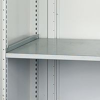 Sliding door is fully lockable, with a central 3 point locking system.  Ideal for when office space is at a premium, with little door opening leeway needed.  Robust welded steel reinforced frame for heavy duty environments.  Galvanised steel shelving is wholly adjustable with a 25mm pitch.  Powder coated frame is both smart and scratch resistant.  Cupboard delivered assembled and ready to use.         Made in UK       Max. load (kg) : 1500 kg       Max. load per shelf (kg) : 160 kg