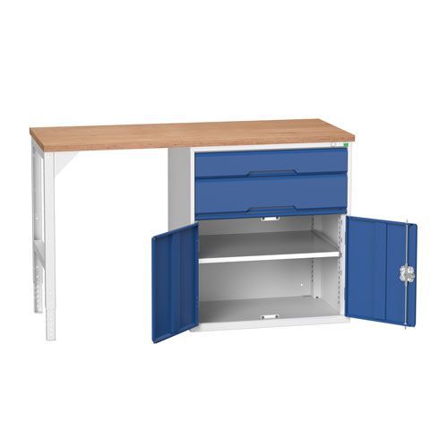A workbench that is ideal for industrial workplaces, offering drawer, cupboard and shelf storage.