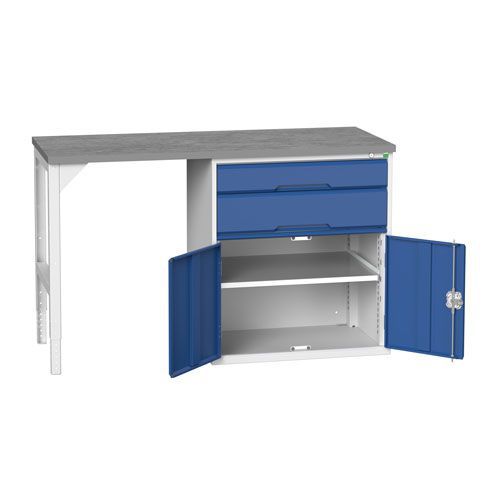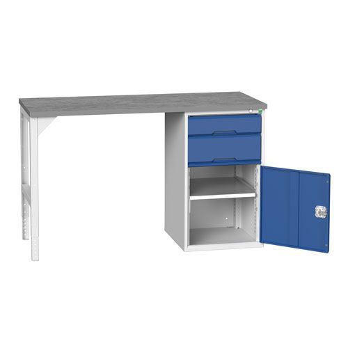 The workbench comes with your choice of a 30mm thick multiplex or lino worktop. The lino worktop is a 2mm grey linoleum surface with plastic edge-banding - ideal for working with oils, acids and chemicals. The MPX worktop is resin bonded, layered beech ply - hard-wearing and suitable for most benching applications. Different drawer sizes offer efficient storage for tools and parts. The steel shelves resist scuffs, have a 75kg UDL capacity and adjust in 25mm increments. All Bott drawers have 100% roller bearing slides that open the drawers fully and smoothly, even if they are filled up. The central 3 point locking system offers superb security. The steel frame has a smart, powder-coated finish that is both resilient and professional in appearance. Full self-assembly instructions are included with this flat-pack kit. You can assemble the pedestal cabinet to be on the left or right - whichever suits you best!