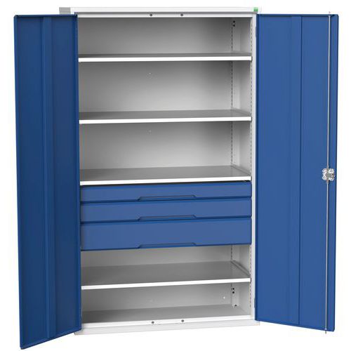 Bott Verso sturdy storage cabinets, with shelves and drawers. HxWxD 2000x1300x550mm.