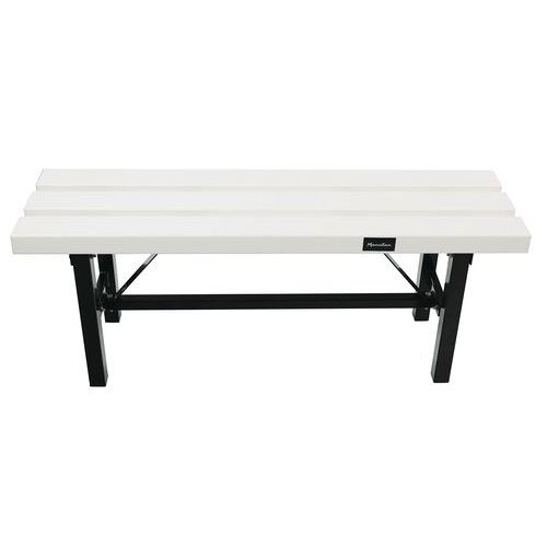 White PVC bench - Self-assembly - Manutan Expert White PVC bench for indoor use. Moisture-resistant design that is easy to clean. The lightweight structure is easy to assemble and to move. Simple and functional design, ideal for communal areas. Perfect for changing rooms, break rooms and entrance halls.