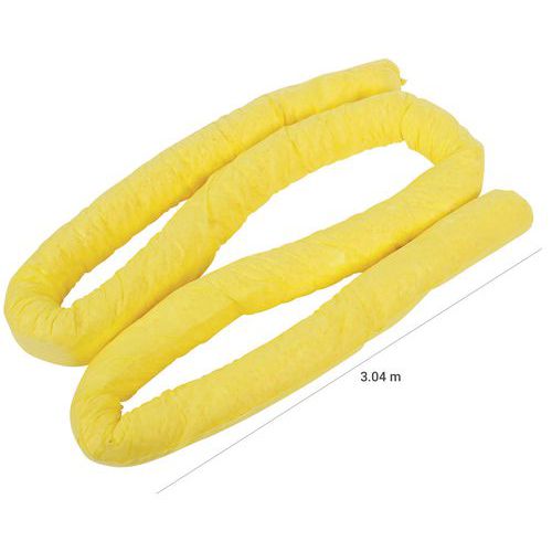 Flexible absorbent sock, adapts to the required shape. Absorbs and contains chemical and hazardous liquid spills. Ideal for surrounding spill areas on floors. All Manutan products are tested and approved by our teams.