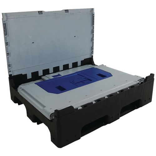 Collapsible Plastic Box Pallet, Capacity: 840 L, O/A height: 975 mm, O/A width: 1000 mm, O/A length: 1200 mm