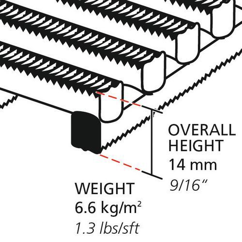 14mm thickness anti-slip matting, ideal for roof walkways and other wet and hazardous environments.