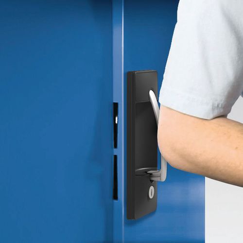 - In line with hygiene standards, the ergonomic lock allows you to open it while wearing gloves and close it using your elbow.