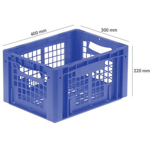 | Product Name | European standard container with openwork sides and base, Capacity: 19 L, Stackable: yes, O/A height: 220 mm |