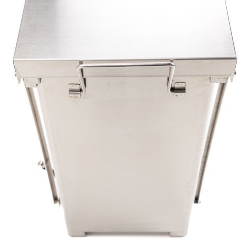 This sturdy stainless steel bin opens by depressing the pedal and is both fire- and weather-resistant.
