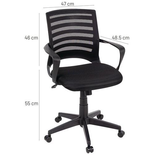 | Product Name | Ella office chair, With armrest: yes, Type of leg: Rollers, Seating material: Fabric, Headrest: no |