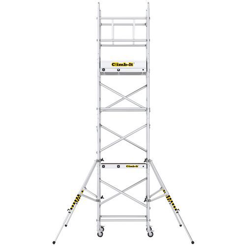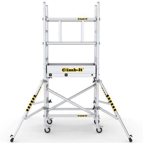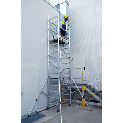 Compact yet professional-grade scaffold that allows single-person assembly with ease. Designed for efficiency, it feature telescopic stabilisers, transport wheels, and modular sections that make it simple to move, store and set up on-site. Ideal for any fast-paced working environment.