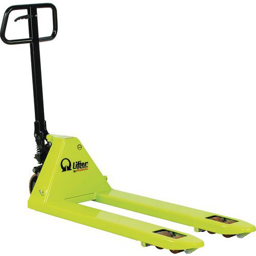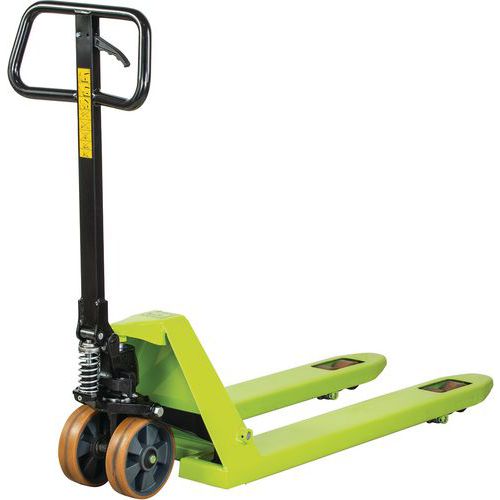 | Product Name | GS25 manual pallet truck, Load capacity: 2500 kg, Fork length: 1150 mm, Steering wheel material: Polyurethane |