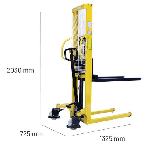 | Product Name | Manual pallet stacker, Load capacity: 500 kg, Max. lift height: 1600 mm, O/A length: 1650 mm |