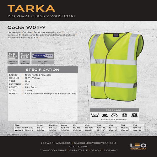 ID pocket. Mobile phone pocket. 2 front bellowed storage pockets. Double pen pocket with D ring feature. Shaped low rise design at hip for easy trouser pocket access. Deep arm holes, ideal for wearing over the top of thicker clothing. 100% knitted polyester, lightweight and durable. EN/ISO 20471 Class 2, intermediate level of visibility. Have your company logo printed on any of our workwear. Call 0800 37 30 30 for more details.