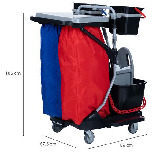 | Product Name | Cleaning trolley with 2x4-l buckets with press and plastic sack, Capacity: 30 L, Colour: Black |