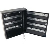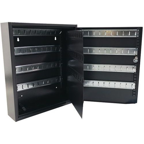 Lockable key cabinet with a tough, steel body.