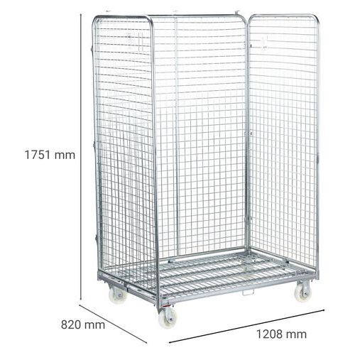 Large Roll Cage/Container - 3 Sides - 600kg Capacity - Manutan Expert