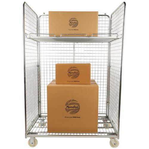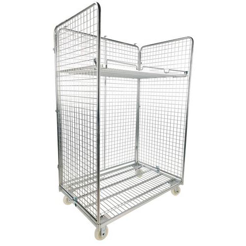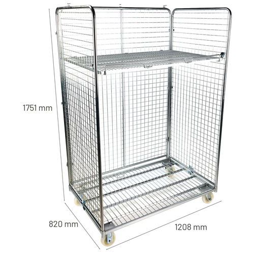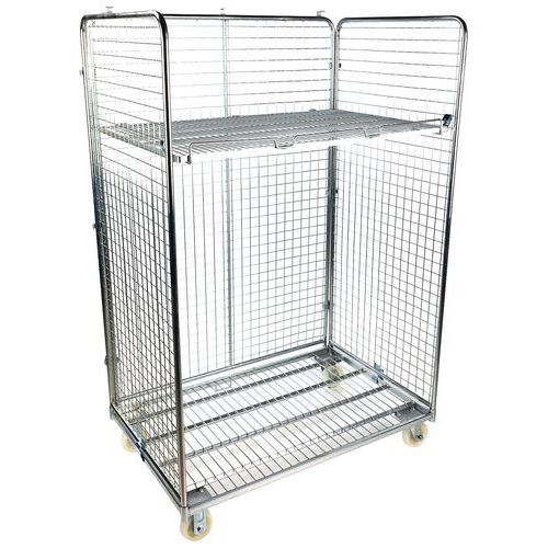 Large Roll Cage/Container - 600kg - 3 Sides & 1 Shelf - Manutan Expert