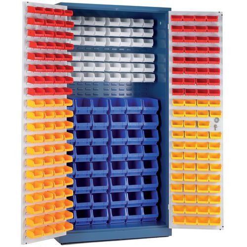 Metal Office Cupboard - x3 Louvre Panels & 255 Plastic Storage Bins