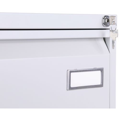 Tip-over protection prevents accidentally opening more than one drawer at a time. Full-width handle for good grip every time. Classic filing cabinet for A4, folio and large folio sizes. The product comes with a base for each drawer. The maximum load is 30 kg. The cabinet can be locked with a key (one set of two keys included). Safety warning:- Install the unit on a flat surface- Use suitable fasteners to fix it to a wall or partition- Ensure you do not exceed the recommended maximum load capacity or load distribution- Locking product that can hold 50suspension files