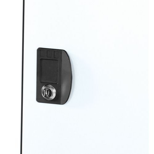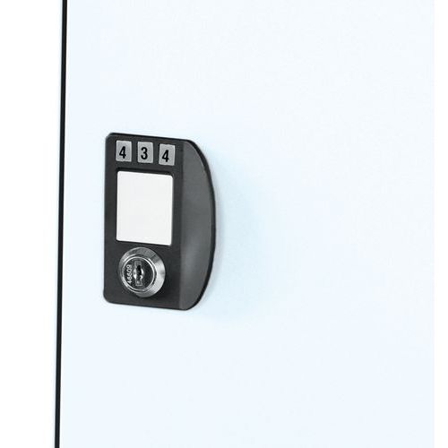 Features a hygienic ventilation slot at the back of each compartment, allowing air to circulate. The lock has a built-in label holder so each locker compartment can be labelled. The epoxy finish has an ultra scratch-resistant coating. The doors have noise-cancelling door stoppers that prevent damage to the door if it is closed too hard. All Manutan products are tested and approved by our teams. Ventilation slot on the back of each locker. Closing handle with label holder.