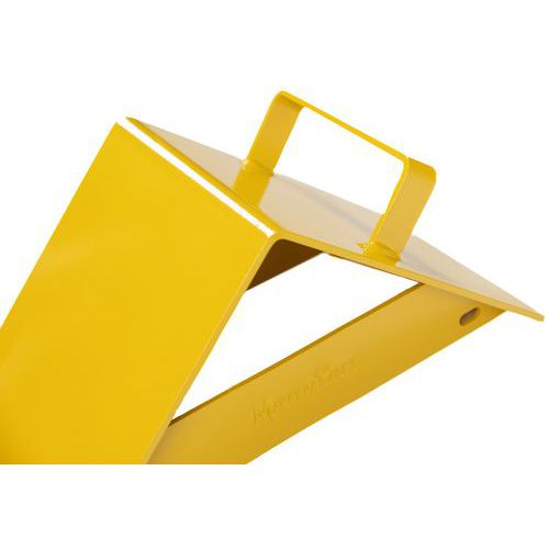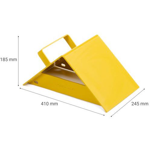 - Yellow metal lorry wheel chock with handle - Manutan Expert #