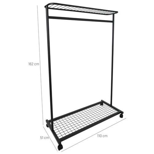 Mobile Coat Rack, Height: 162 cm, Width: 110 cm, Colour: Black, Type of product: Mobile coat rail