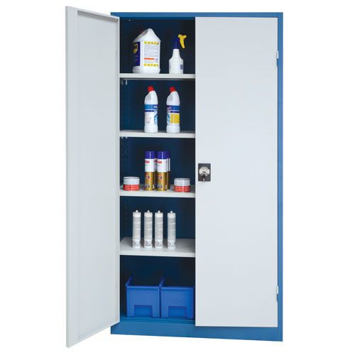 - This multi-purpose lockable storage cupboard features a 2-point cylinder locking system to keep the contents safe.