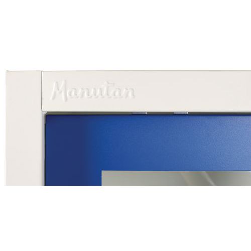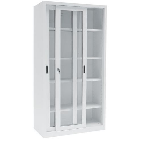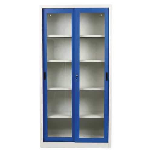 The clear Plexiglas doors allow you to see the cupboard's contents at a glance.