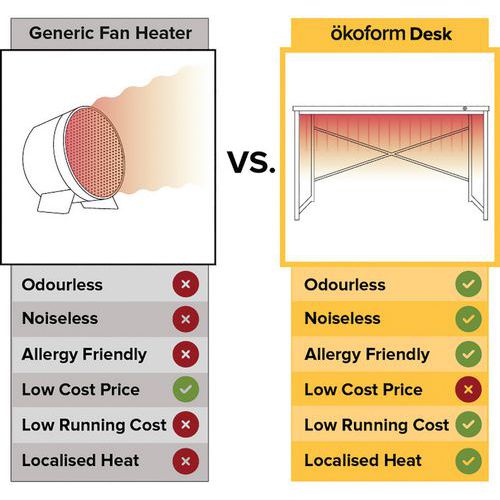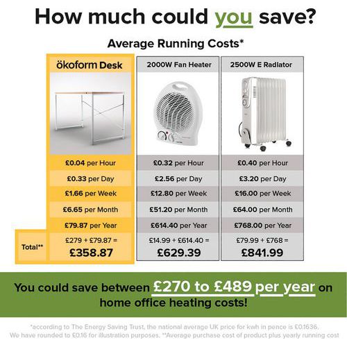 Okoform Heated Home/Office Desk - Energy Saving - LxW 1200x600mm