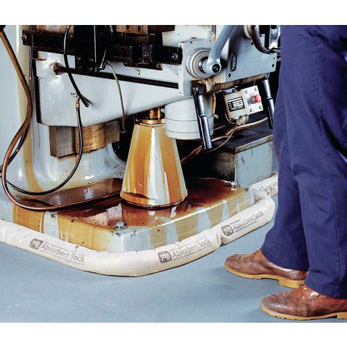 Malleable socks that can be placed in corners and at the base of machines to absorb leaks. Absorbs the most common industrial fluids: water, oil, solvents, coolants and more. Highly absorbent even when saturated. Polypropylene outer for maximum tear resistance. Grey sock to hide stains. For everyday maintenance tasks