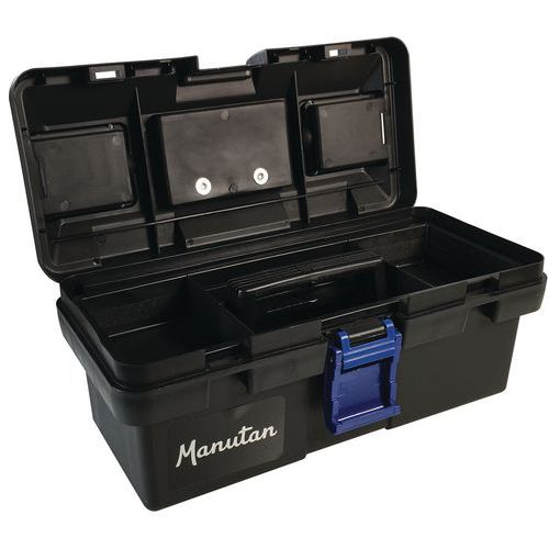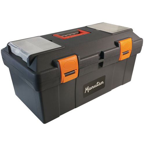 Comfortable PVC handles. Features two transparent compartments in the lid and one removable polypropylene tray. 10-year guarantee. All Manutan products are tested and approved by our teams.