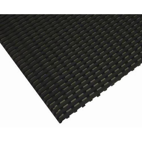 Slip-resistant top and bottom surfaces. Two-layer design provides comfortable cushioning to help reduce fatigue in industrial environments. Excellent drainage for liquid spillages, the layered construction quickly disperses hazardous matter or spillages. Resistant to chemicals, oils, acids and UV light. Four-year guarantee. Quick to install: can be cut to fit on-site and contours to uneven surfaces. Conforms to slip resistance test DIN 51130 R11 and V10. Fire-resistant to DIN 4102 Part 1. Excellent sound absorption. Designed to function at temperatures from -23°C and up to +60°C. Manufactured from 100% recycled black factory PVC. Non-porous PVC is naturally resistant to bacteria growth and easy to clean. Note: maximum continuous cut length supplied 10m.
