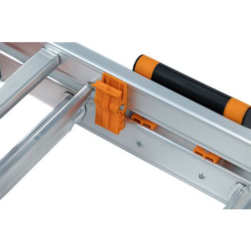 Multi-purpose tool shelf. Reinforced aluminium frame. Non-slip treads. Easy to carry and store. Complies with EN 131 and GS TUV Rheinland regulations. 10-year guarantee. Max. load (kg) : 150 kg