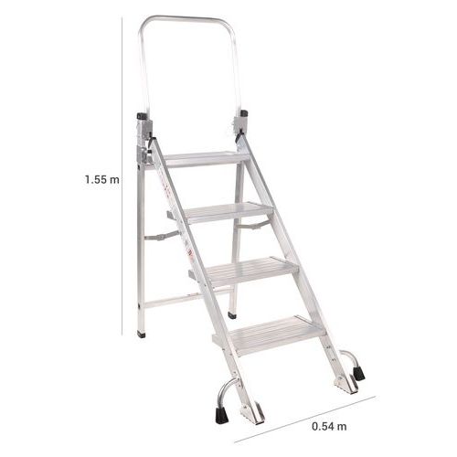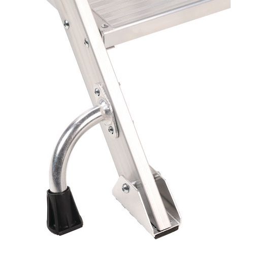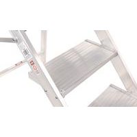 Sturdy, lightweight stepstool with wide steps. Safe to use thanks to the safety rail on the upper section. Highly stable: front legs include two additional feet on the ground. Frame can be folded up extremely quickly for easy storage. Reliable non-slip with rubber-coated aluminium feet. Max. load (kg) : 150 kg
